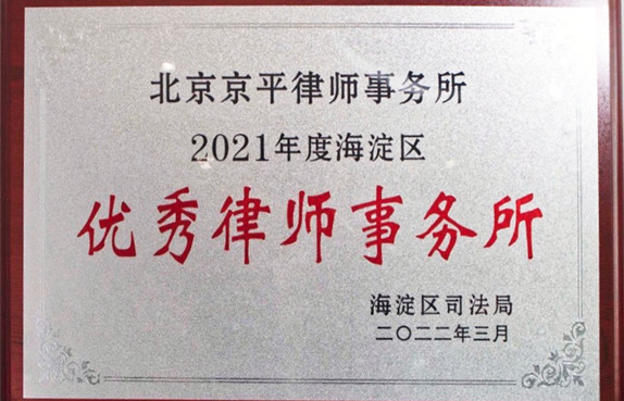 京平律所被評為“2021年度海淀區(qū)優(yōu)秀律師事務(wù)所”,趙健主任被評為“優(yōu)秀律師事務(wù)